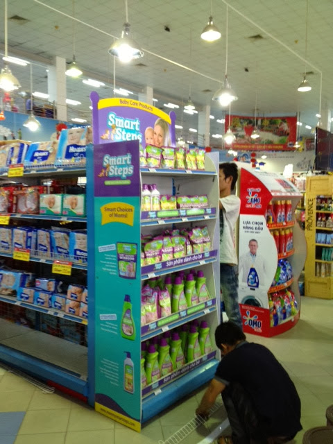 các đầu kệ trưng bày sản phẩm trong siêu thị